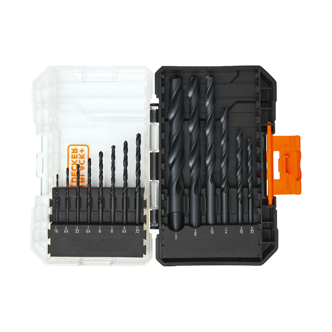 Introducing the Black+Decker 14-Piece Drill Bit Set, tackle common DIY home improvement projects with our Black Oxide durable and versatile set.