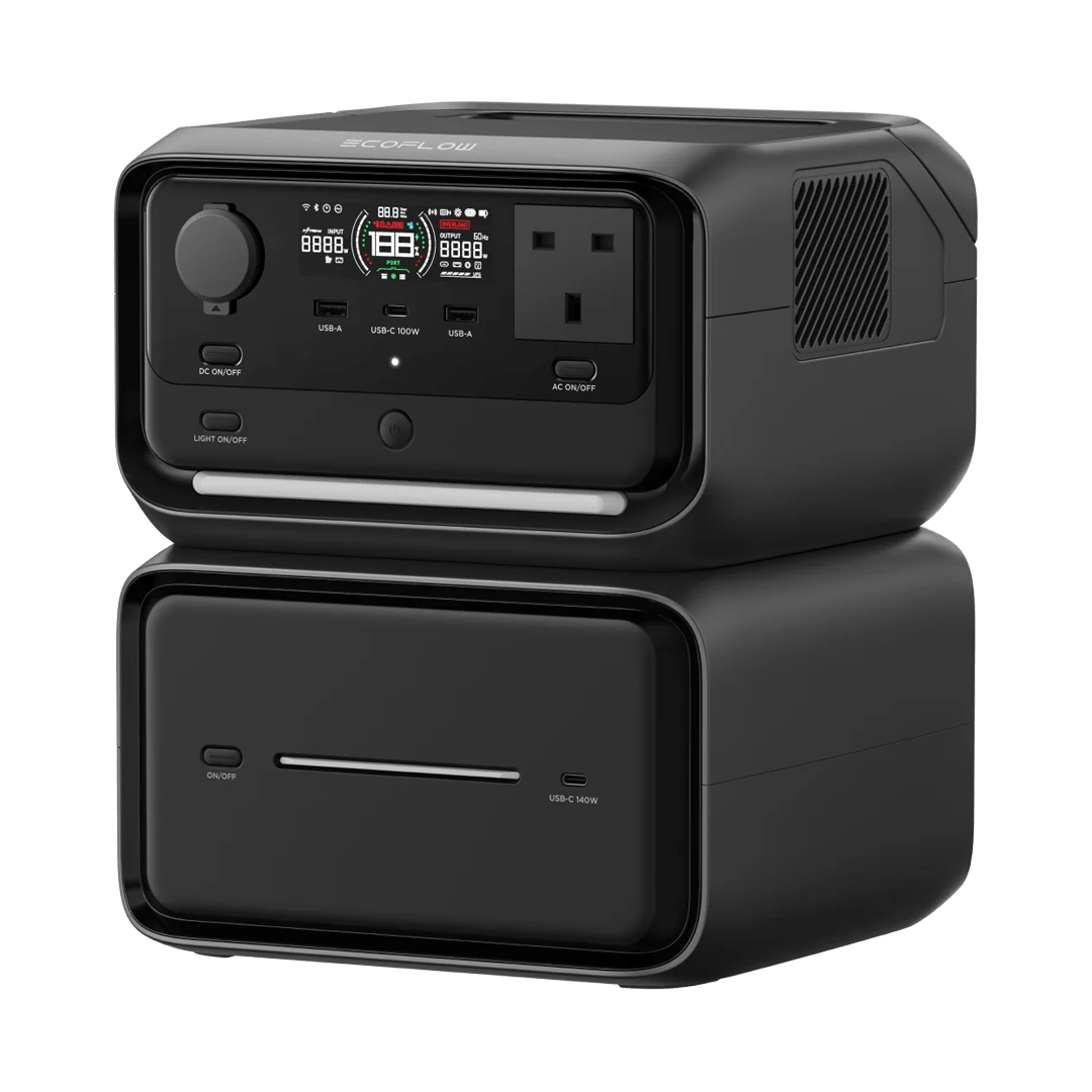Level up your power with the RIVER 3 Plus and an Extra Battery. Handling either the EB300 (286Wh) or the EB600 (572Wh), just stack them to get up to 858Wh of pure energy.